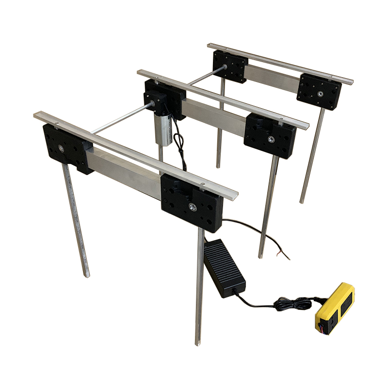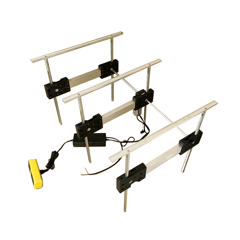 二人位屏风升降器主要由一台升降主电机与二台升降副机组成,通过传动六角轴,使主机与副机动作保持一致,电动屏风升降器智能控制盒支持遥控控制,中控控制,可根据需要配备中控触摸控制屏等。