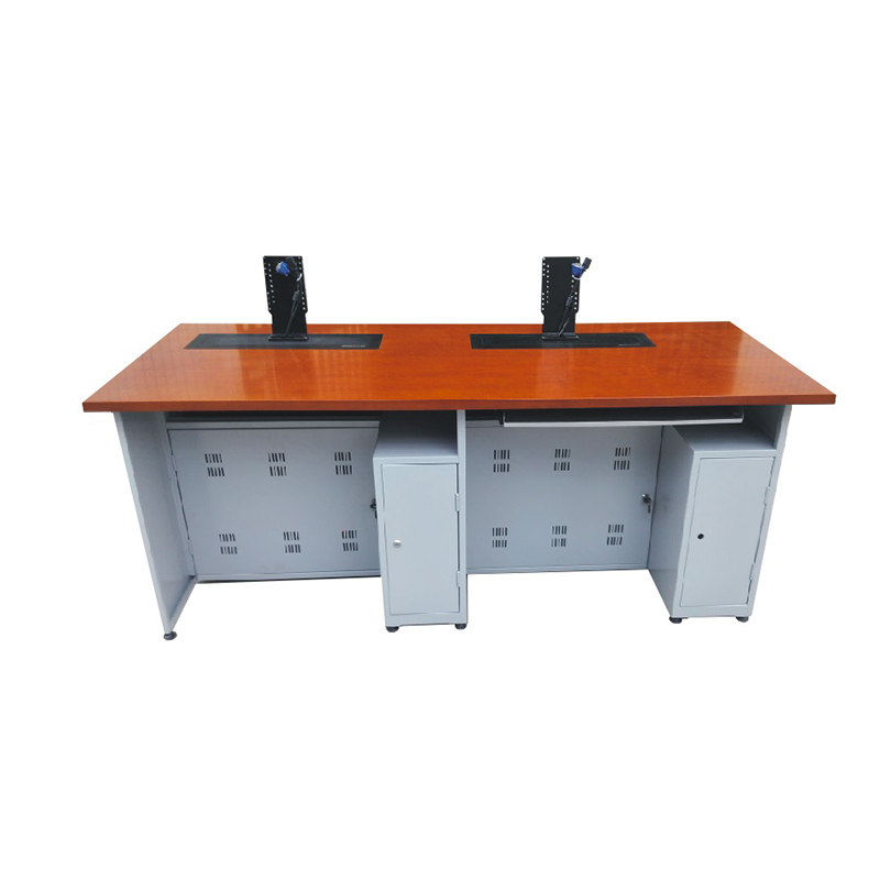 产品特点:, 在液晶屏的上升过程中,装面板自动打开,液晶屏直立伸出桌面并自动接通电源,自动仰成一定角度。下降时液晶屏自动调整为直立状态,自断电源。液晶屏电流自动切断并开始下降,液晶屏完全下降装饰板自动合起